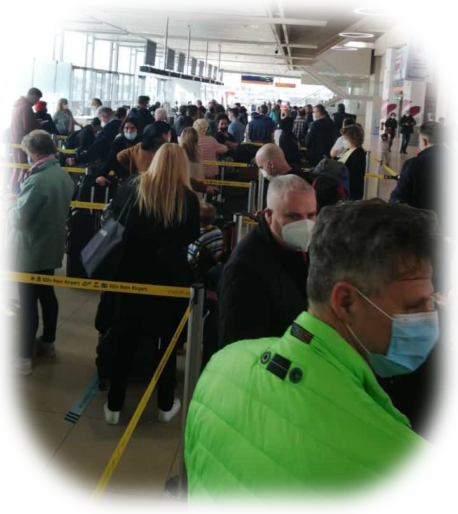 Nachdem wir unsere Koffer zurückhatten, wurde uns gesagt, dass wir mal eben vom Ende des neuen Terminals quer durch dieses und noch bis zum Ende des alten Terminals gehen müssten, um weitere Informationen zu bekommen. Schnitzeljagd mal anders.