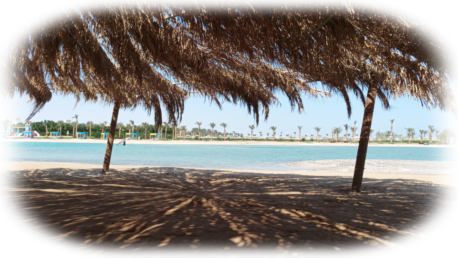 So gestärkt machten wir uns auf, das Hotel und das Gelände zu erkunden. Es gab viel zu entdecken. Das Hotel hat nach dem heutigen Tag den Spitznamen “Hotel der langen Wege”. Nach gut einer Stunde Erkundung machten wir uns auf die Suche nach Micha und seinen Eltern. Wir fanden sie auch und hatten das Gefühl, halb Hurghada abgeklappert zu haben (okay, etwas übertrieben, aber der Sinn ist derselbe). Alle drei lagen unter einem Dach aus Palmenblättern, die reichlich Schatten spendeten.