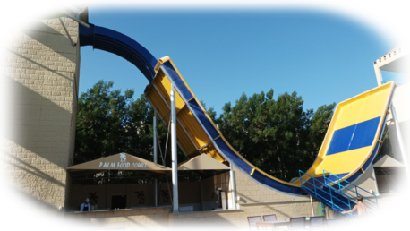 "Halfpipe"-Rutsche. Diese rutscht man mit einem Schwimmring hinunter,