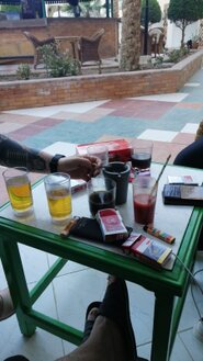 An der Strandbar begrüßte uns Mostafa mit einem freundlichen "Hallo" und servierte uns die gewünschten Getränke.